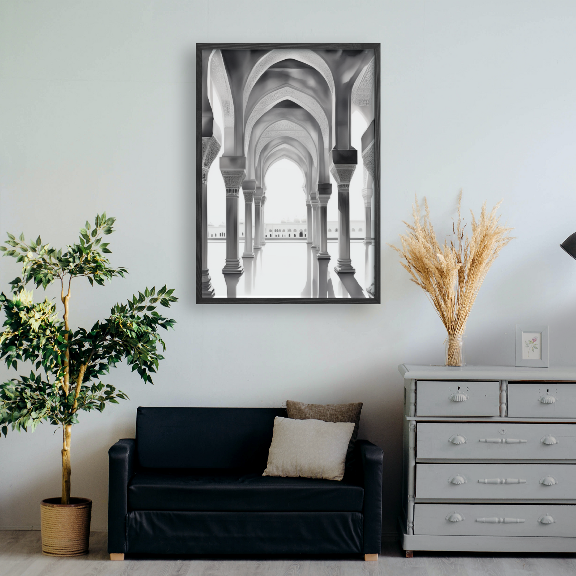 Das islamische Leinwandposter, das wir anbieten, ist ein faszinierendes Kunstwerk, das wunderschön gestaltet ist, um die Atmosphäre Ihres Raumes zu bereichern. Mit aufwendigen Details und reichen Farben zeigt jeder Poster künstlerische Elemente, die von der islamischen Kunst inspiriert sind und eine ruhige und schöne Atmosphäre schaffen. Hergestellt mit hoher Qualität, werden die Poster auf Premium-Leinwand gedruckt, um eine elegante und langlebige Darstellung zu bieten. Geeignet für die Platzierung im Wohnzimmer, Büro oder als besonderes Geschenk mit einem spirituellen und ästhetischen Touch. Fügen Sie Ihrem Zuhause Schönheit und Harmonie hinzu mit unseren bezaubernden Islamischen Leinwandpostern.